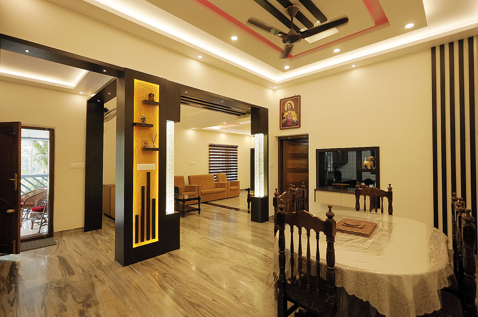 Residential Interior Renovation – Living, Dining & Double Height Area Enhancement Mr.Sunny Thondakarottu, Vennikulam, Thiruvalla, Kerala