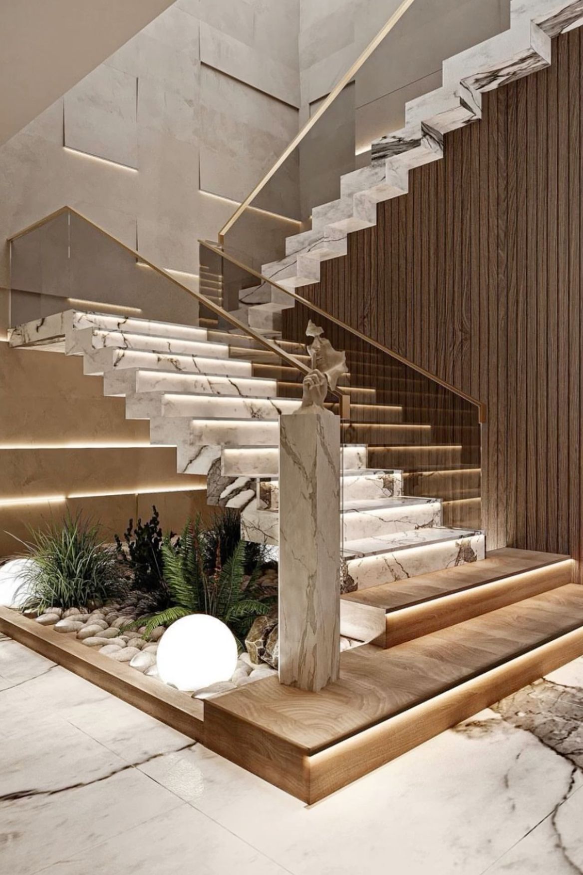 Distinctive design features, including custom wall panels, staircase detailing, and integrated lighting solutions, add depth and identity to the villa’s interior spaces.