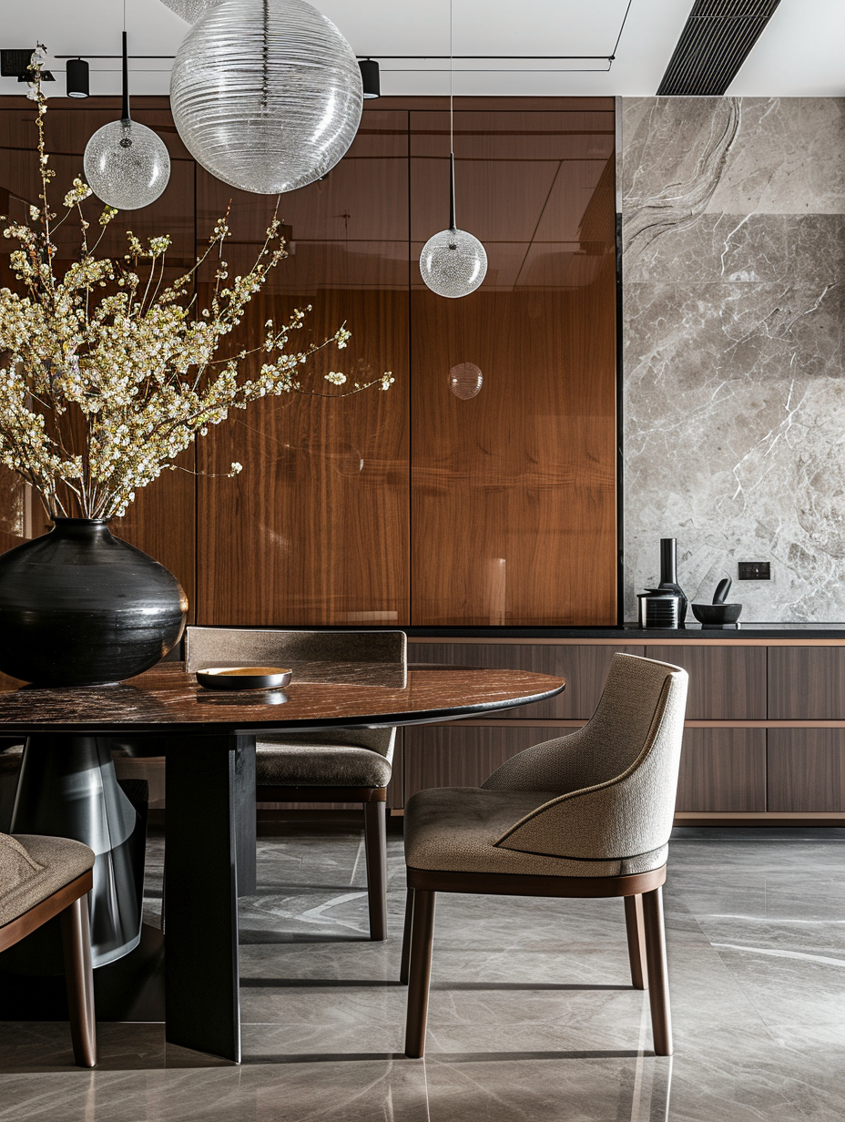 Designed as an extension of the living experience, the dining area combines aesthetic simplicity with visual impact. Elegant lighting features and material continuity create a cohesive and stylish setting.