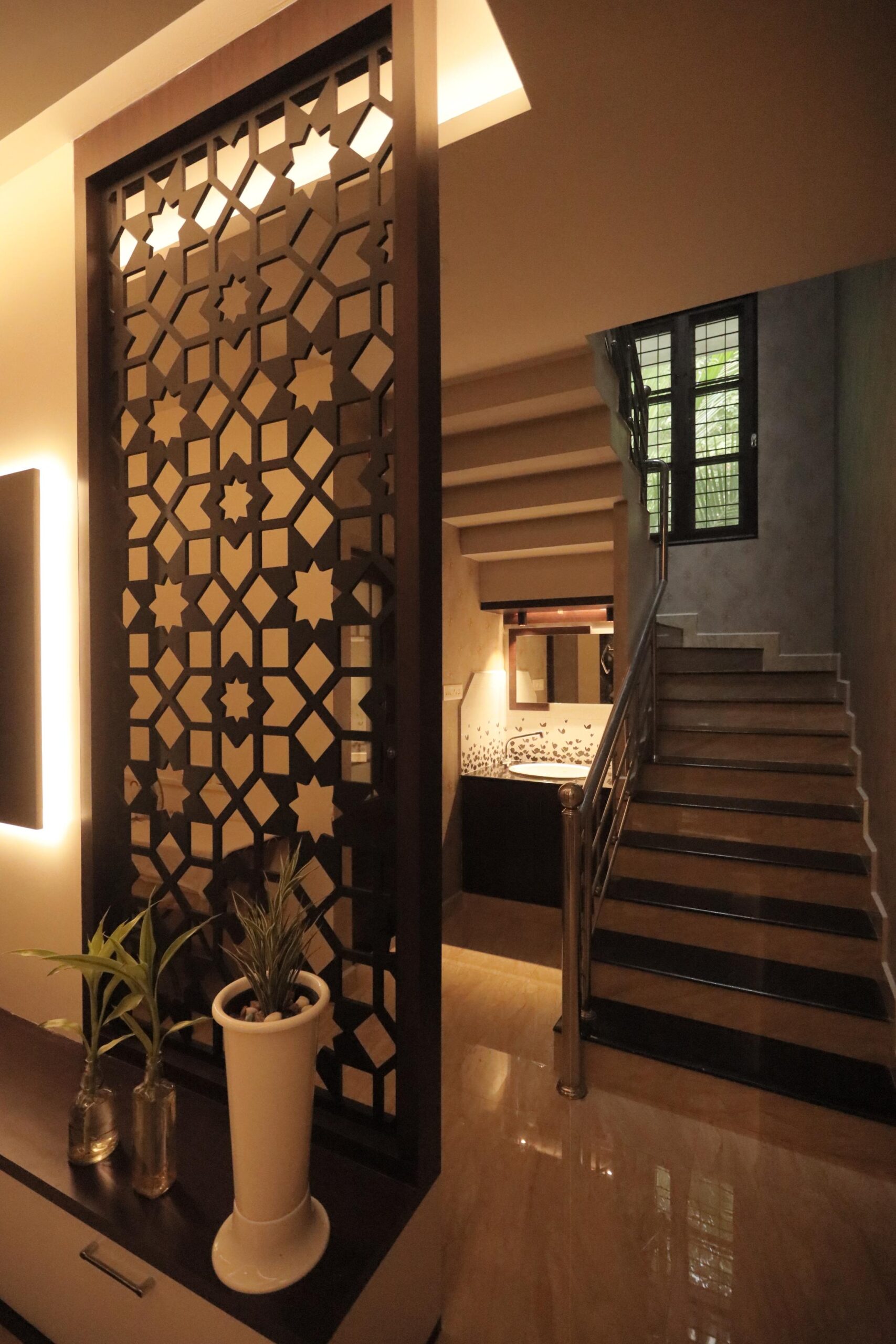 Special attention was given to the entrance and wash area to ensure continuity of design and improved visual appeal. Carefully selected finishes, lighting placements, and minimalistic detailing contribute to a modern yet comfortable ambiance. The overall transformation enhances both the character and usability of the home without excessive structural intervention.